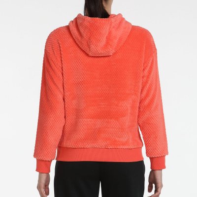 Sweat à capuche de notre ligne Winter. Confectionné en peau de mouton texturée au diamant de polyester, il comporte un devant en maille plate de polyester extensible. Il présente une poche kangourou et des poignets et un bas en rib.