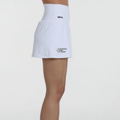 Jupe taille haute de notre ligne Power is my Power, l'une des lignes phares de la Fédération Internationale de Padel. Conçue pour sculpter la silhouette, la jupe présente une doublure en maille et des détails imprimés de la collection.