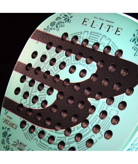 Son esthétique en turquoise intense évoque la fraîcheur et l'énergie, tandis que les éléments graphiques symbolisent la vie, la force et l'identité d'un pays qui célèbre fièrement ses racines. Le design intègre une calavera (crâne) ornée de fleurs de couleurs vives, inspirée du Jour des Morts, l'une des fêtes les plus représentatives de la culture mexicaine. Cette combinaison d'éléments fait de l'Elite MX une raquette unique et pleine de sens. La finition brillante et les motifs décoratifs en relief apportent une sensation de profondeur et d'élégance, renforçant son caractère premium.