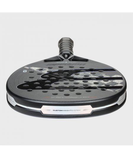 hybride HACK 04 est conçue pour accueillir un total de 4 poids sur le dessus de la raquette, permettant différentes configurations jusqu'à +12g et un changement d'équilibre de +-1cm.