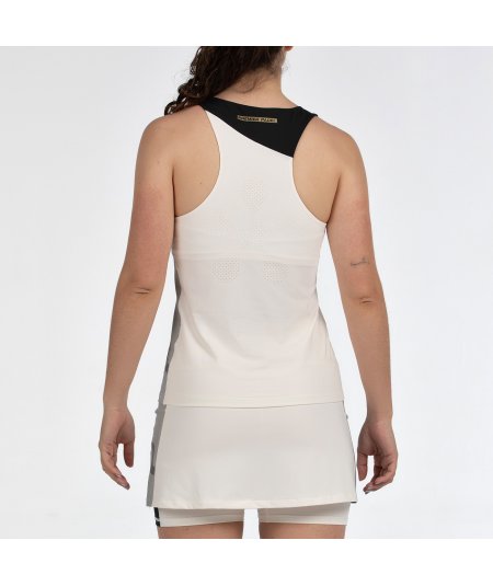 Débardeur technique de la gamme Premier Padel. Conçu pour une performance optimale et une liberté de mouvement maximale, ce débardeur est fabriqué en nylon et élasthanne, offrant légèreté, élasticité et confort exceptionnel. La technologie Drylum assure un séchage rapide et une excellente respirabilité, gardant votre peau au frais même lors des entraînements les plus intenses. Son design asymétrique présente une coupe oblique contrastée au niveau des épaules, une bande graphique exclusive sur le côté gauche et une silhouette ajustée qui souligne son style sportif. Les perforations laser au dos améliorent la ventilation, tandis que les graphismes exclusifs Premier Padel ajoutent une touche d'authenticité et de haute performance.
