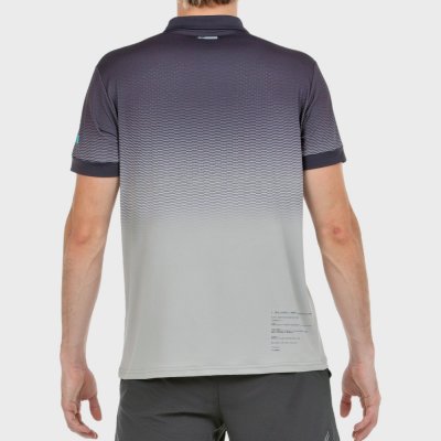 High-quality patterned Polo Shirt from the Máster line. The design features contrasting details on the sleeve, a collar made from the same fabric, and buttons. The back has laser perforated details to enhance the ventilation of the garment, and is decorated with prints and a reflective collection label.