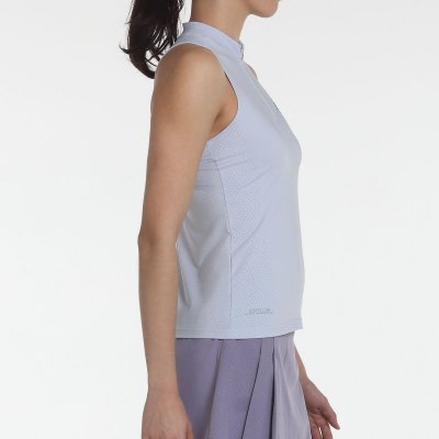 Fitted sleeveless Tank top from our Purecolor line, a favourite of our player, Gemma Triay. The design, made with woven stretch nylon and perforated details on the side, neckline, and back, incorporates a half-zip Mao collar.