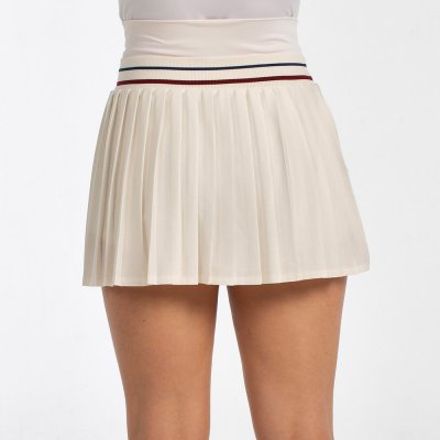 Style and movement go hand in hand in this skirt designed to shine on and off the court. A garment designed to elevate your performance on the court without sacrificing style. Designed to accompany you in every movement with maximum comfort, its technical construction and functional details make the difference match after match. Pleated skirt with mesh lining from our Timeless line, made with Repreve yarns and signed by player Gemma Triay, in recycled polyester textured jersey. It features a double tricolor ribbed waistband with a drawstring for adjustment and a single polyester waistband with elastane, with an embroidered logo on the front.