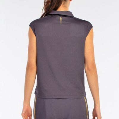 Diseño elegante de manga corta caída, con silueta femenina, cuello en el mismo tejido y botonadura. Costuras termoselladas en los costados rematadas con cintas ultrasónicas. Decorada con estampado en el pecho y los gráficos de Premier Padel.