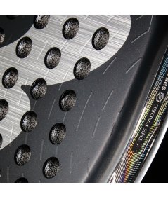 The hole pattern on a padel racket plays an important role in performance, influencing factors such as control, ball output, and power. The XPLO’s new hole pattern has been designed from the ground up, in perfect synergy with the racket's structure, playing style, and materials. This radically innovative format eliminates drilling along the longitudinal axis, which increases the racket's face stiffness.