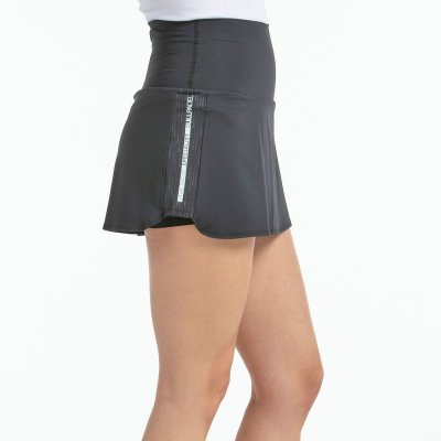 Skirt made of light fabric with elastic nylon mesh stripes, and an embossed the side part. It has an inner mesh and a high waistband that shapes the silhouette.