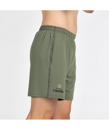 Premier Padel technical shorts. Designed for maximum performance, comfort, and style, these shorts are made from a polyester and elastane blend, providing lightness and freedom of movement. Drynamic technology works on the microfilaments to reduce moisture and promote breathability, keeping you dry and cool throughout the match. The design includes side stripes with custom graphics, an adjustable drawstring waistband, and functional side pockets. At 42 cm in length, they offer ideal comfort for playing. Exclusive Premier Padel graphics add the finishing touch to a garment designed for those who compete with attitude and style.