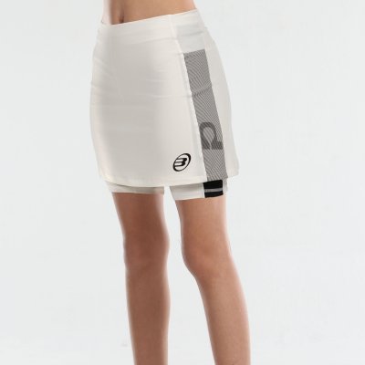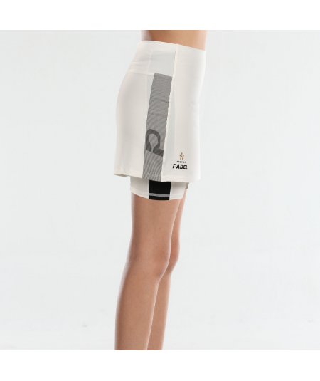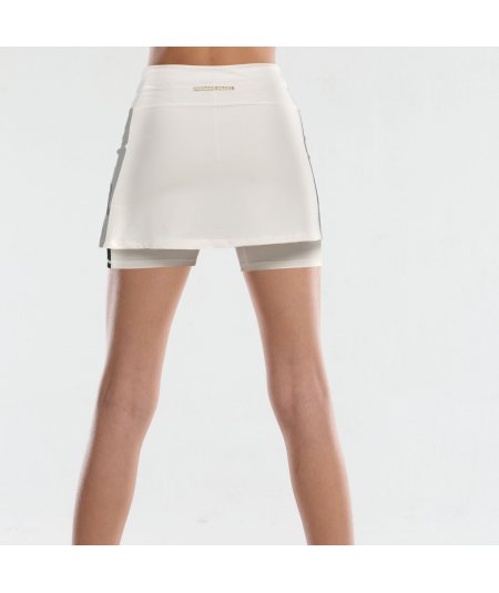 Technical skirt with inner mesh lining from the Premier Padel line. Girls' version of the Portoa model. Designed to move with you, this skirt is made from nylon and elastane fabric, offering maximum elasticity, lightness, and comfort. It features Drylum technology, which guarantees quick drying and excellent moisture management, keeping you dry and cool throughout the match. It has a custom graphic stripe down the sides and a slightly longer inner mesh lining with contrasting stripes that add a distinctive and functional touch. Finished with official Premier Padel graphics, this skirt combines performance, style, and technology for players who want to stand out on and off the court.