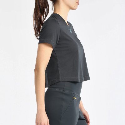 Maglietta a maniche corte, scollo a V. Taglio sul petto dove termina il colletto. Logo Bullpadel sul petto e Bea sul retro. Tessuto con finitura Quickerdry, che facilita la fuoriuscita del sudore.