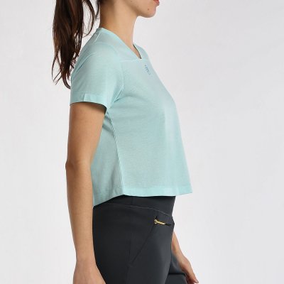 Maglietta a maniche corte, scollo a V. Taglio sul petto dove termina il colletto. Logo Bullpadel sul petto e Bea sul retro. Tessuto con finitura Quickerdry, che facilita la fuoriuscita del sudore.