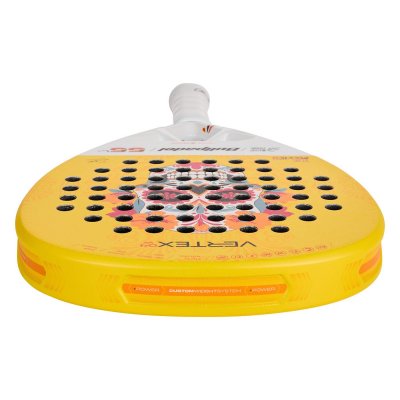 La struttura Vertex è progettata per ospitare un totale di 5 pesi. 4 sulla parte superiore della racchetta e un altro sulla parte della spina con un peso di 5g o 10g. Con tutto questo, possiamo creare specifiche diverse fino a 22g in più e una variazione di bilanciamento di +-1cm.