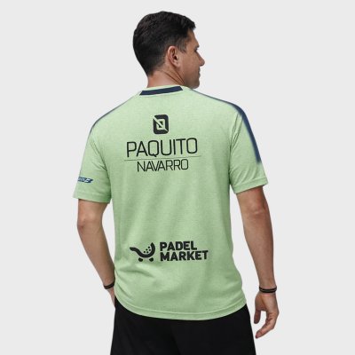 Questa replica della t-shirt tecnica MONTSE è progettata per il massimo delle prestazioni e del comfort in campo, ispirandosi allo stile potente e aggressivo di una delle leggende del padel professionistico. Il suo design offre un'estetica moderna ed elegante, perfetta sia per la competizione che per l'allenamento. Realizzata in tessuto leggero e traspirante, allontana il sudore e aiuta a mantenere la pelle asciutta durante le partite più intense. La sua costruzione ergonomica consente una grande libertà di movimento, accompagnando ogni colpo con comfort e precisione. Sul retro è presente il nome di Paquito Navarro insieme al suo logo e ai loghi dei suoi sponsor, mentre sul davanti sono presenti i loghi degli altri sponsor.