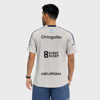 Questa replica della t-shirt tecnica MONTSE è progettata per offrire il massimo delle prestazioni e del comfort in campo, ispirandosi allo stile instancabile e all'intensità competitiva di uno dei giocatori più eccezionali del padel professionistico. Il suo design pulito ed elegante unisce funzionalità ed estetica per accompagnarti in ogni punto. Realizzata con un tessuto leggero e traspirante, favorisce la rapida evaporazione del sudore per mantenere la pelle asciutta e confortevole durante le partite più impegnative. La sua costruzione ergonomica consente una grande libertà di movimento, adattandosi perfettamente al ritmo del gioco. Il nome Chingotto spicca sul retro insieme alla bandiera argentina, un omaggio all'identità del giocatore e allo spirito competitivo in campo, mentre il logo dello sponsor principale è ben visibile sul davanti.