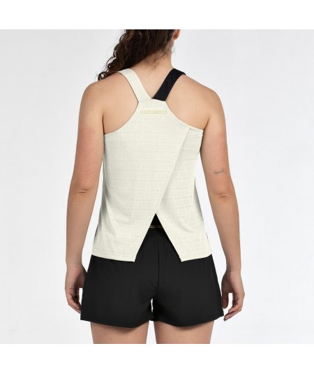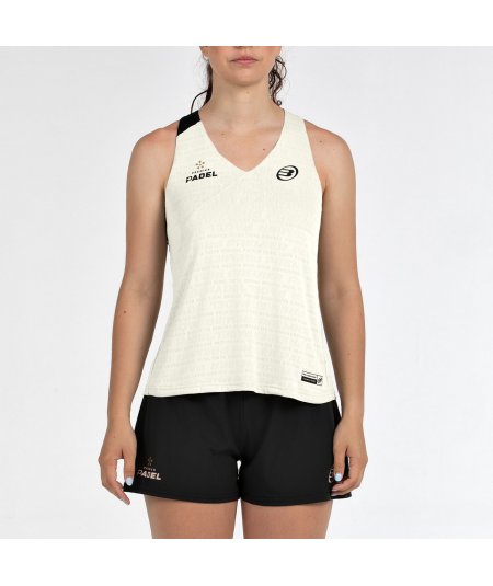 Canotta tecnica della linea Premier Padel. Pensata per i giocatori che cercano prestazioni e stile, questa canotta a spalline larghe è realizzata in tessuto jacquard personalizzato con finitura ad asciugatura rapida che allontana l'umidità e migliora la traspirabilità. Il suo design combina uno scollo a V con effetto incrociato, una doppia schiena con apertura e una spallina destra con pannello a contrasto, aggiungendo un tocco moderno e dinamico senza rinunciare al comfort. Le esclusive grafiche Premier Padel completano un capo che riflette tecnologia, femminilità e spirito competitivo dentro e fuori dal campo.