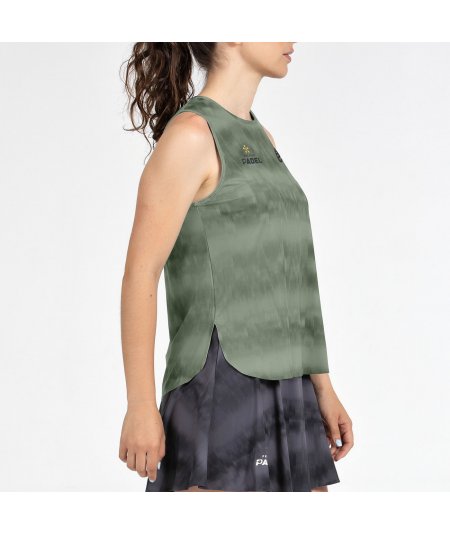 T-shirt senza maniche stampata della linea Premier Padel. Dai il massimo in ogni situazione con questa t-shirt senza maniche realizzata in tessuto tecnico elasticizzato, realizzata in poliestere con elastan per la massima libertà di movimento. La sua tecnologia Drynamic utilizza microfilamenti che favoriscono l'evaporazione del sudore, mantenendo il corpo asciutto e fresco durante il gioco. L'orlo arrotondato e le perforazioni laser sulla schiena migliorano la ventilazione e offrono un comfort extra nei momenti di massima intensità. Caratterizzata da una stampa esclusiva e dalla grafica ufficiale Premier Padel, unisce design e funzionalità in un unico capo.